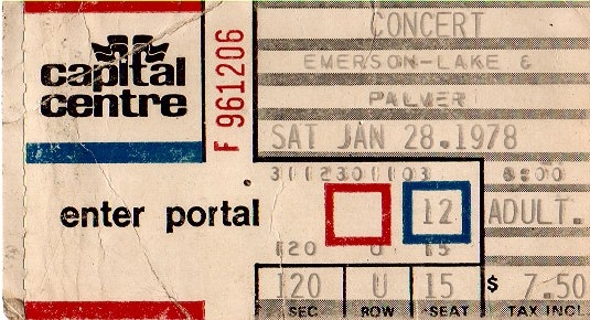 Ticket stub from the show at Capital Centre, Largo (Landover), MD, 1978, provided by Frank.