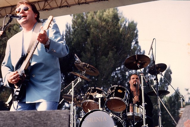 Another shot of Greg Lake (with Carl Kennedy on drums) onstage at the rock festival in